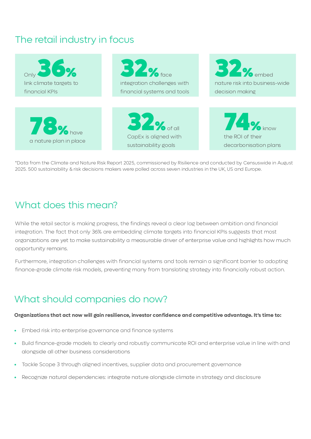 Transitioning towards the low-carbon economy is presenting retail with unprecedented market challenges. As climate volatility intensifies, access to advanced data analytics is essential to identify risks across the value chain, close gaps in diverse supply chains, and integrate financially quantified transition risks and opportunities into strategic planning for growth.